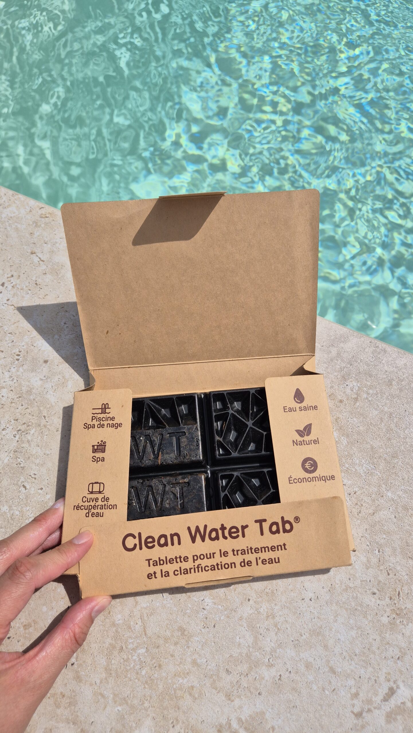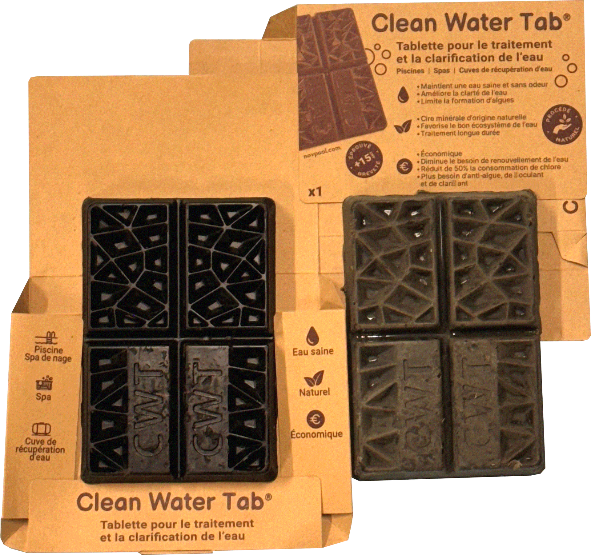Clean Water Tab® est une tablette innovante en cire minérale d’origine naturelle, destinée au traitement de l’eau des piscines, spas et cuves de récupération d’eau de pluie.
