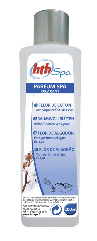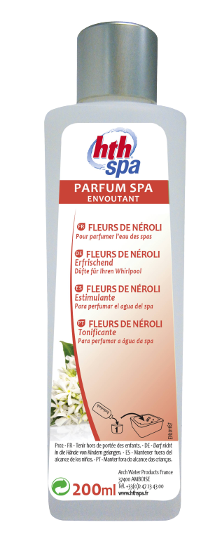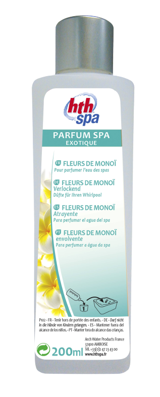 - La persistance du parfum dépend du confinement du bassin, des conditions climatiques (en particulier, le vent), du nombre de baigneurs et aussi de la perception des utilisateurs • Parfums disponibles : Fleur d’Oranger : parfum « soin d’arômes » aux vertus apaisantes ; Fleur de coton : parfum « soin d’arômes » aux vertus relaxantes ; Fleur d’Agrumes : parfum « soin d’arômes » aux vertus tonifiantes ; Thé vert : parfum « soin d’arômes » aux vertus revitalisantes ; Jardin de Provence : parfum « soin d’arômes » aux vertus reposantes ; Bouquet de roses et groseilles : parfum « soin d’arômes » aux vertus captivantes ; Chocolat : parfum « soin d’arômes » à l'odeur gourmande ; Fleurs de Néroli : parfum « soin d’arômes » aux vertus envoutantes ; Eucalyptus à base d'huile essentielle aux vertus purifiante ; Monoï : parfum "exotique".