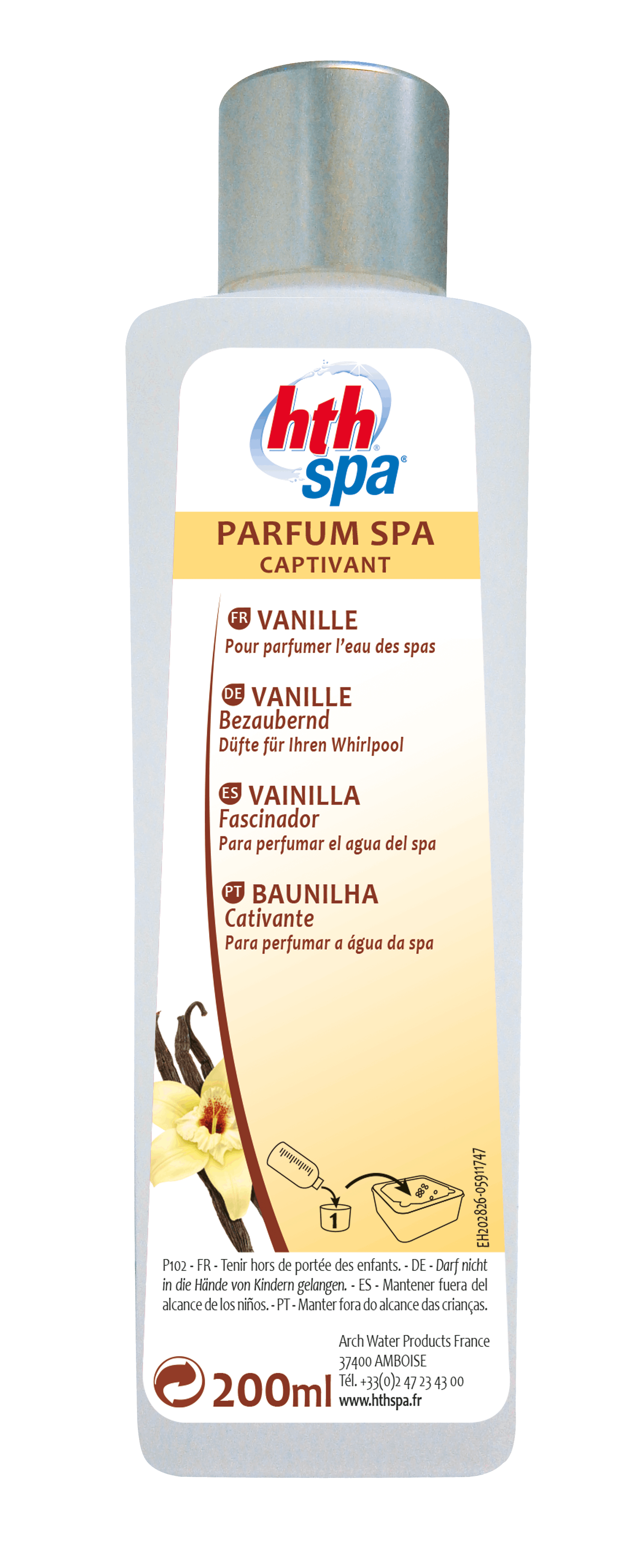 Le parfum ne perturbe pas l'action des produits de traitement de l’eau, mais ne les remplace en aucun cas.
