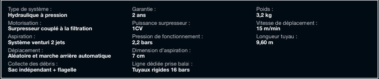 Conçu pour allier efficacité et robustesse, le POLARIS 280 bénéficie des évolutions technologiques obtenues ces dernières années. Son système de transmission efficace lui permet de se déplacer rapidement, dans toutes les directions, quelque soit la forme ou la dimension du bassin. Les deux jets disposés face à face créent un effet venturi homogène qui permet à l’appareil d’adhérer au sol de manière optimale et d’augmenter ses performances de nettoyage.